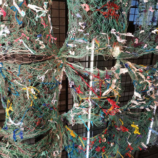 NORI MONOGATARI is a site-responsive research project based on participatory textiles with elementary school children for the Tokiwa Gallery at the Tokiwa Museum. Local culture is inquired through the use of recycled fishing nets and the medium and techniques of textiles. This material embodies the local tradition of seaweed farming and production and the importance of Ube as a port city. This rooted and compelling story is on the verge of disappearing, as the Nori seaweed industry is probably meant to stop in ten years, as explained by the fishermen's association's members. Following the lines and dots of those fishing nets, it is possible to discover a unique and essential part of Japanese culture strongly connected to history, the environment, the slow change of life habits, and climate changes.